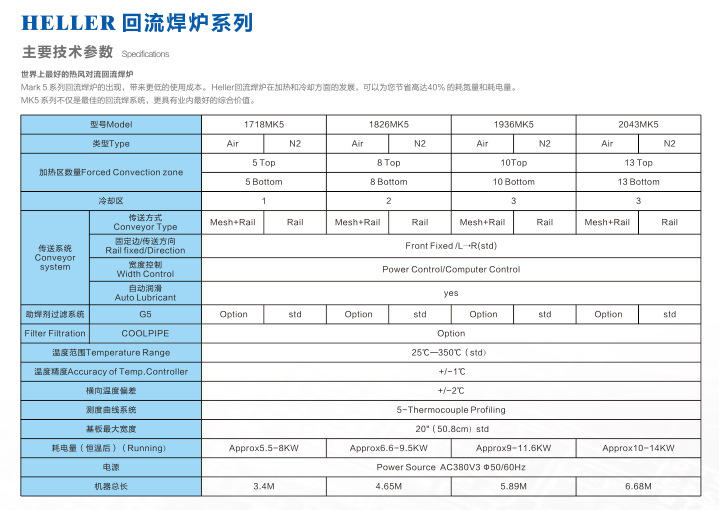 美國HELLER無鉛回流焊,HELLER垂直固化爐,HELLER真空回流焊設(shè)備。有HELLER 1809MK3、HELLER1913MK3、HELLER1936MK5、HELLER1707MK3、HELLER1807mk5、HELLER1826MK5、HELLER回流焊2043MK5等全系列產(chǎn)品,HELLER回流焊是進(jìn)口回流焊性價(jià)比最高的回流焊,HELLER回流焊節(jié)能高效。